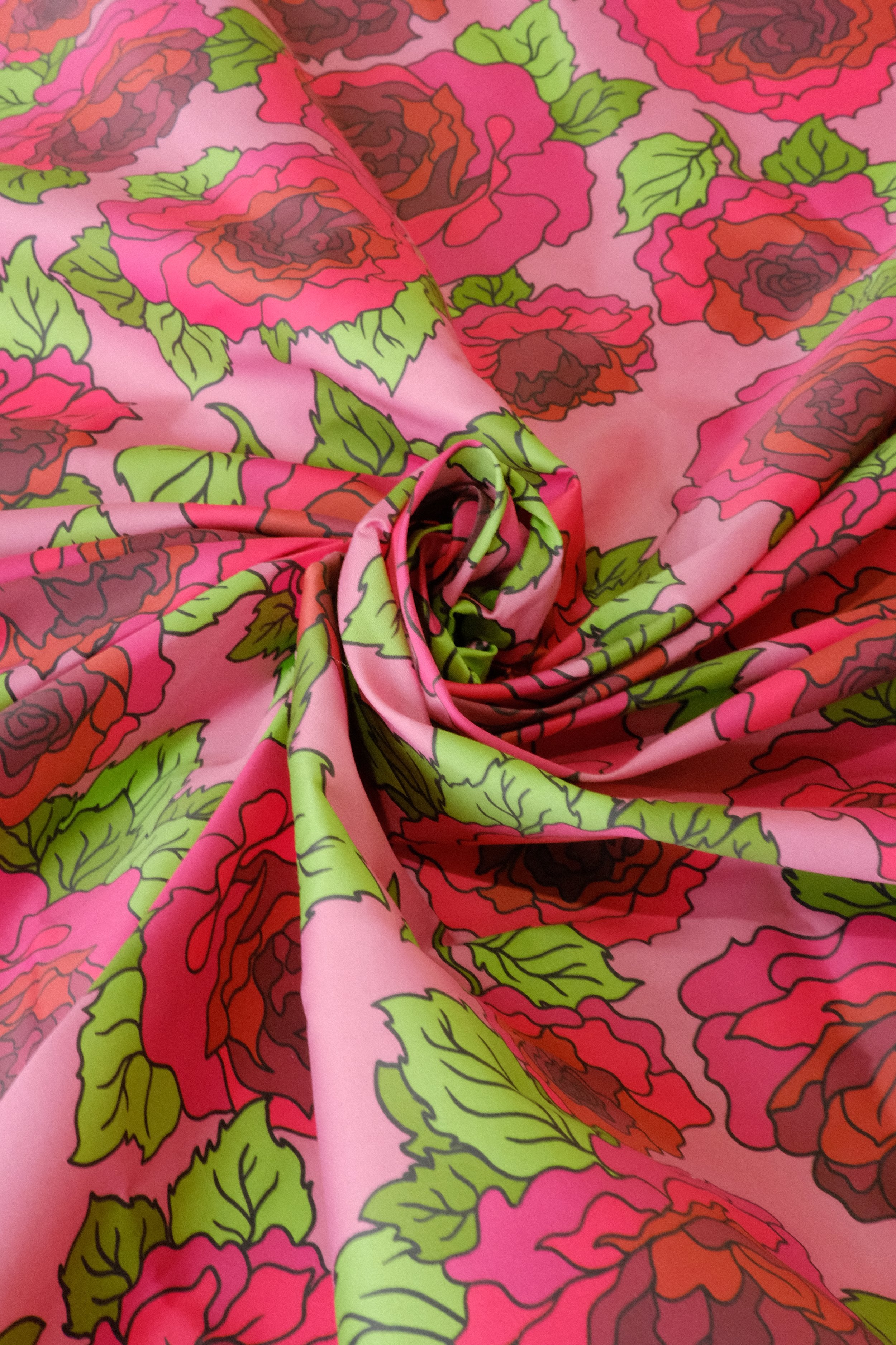 Red Roses on Pink 100% Organic Cotton Sateen (per meter)
