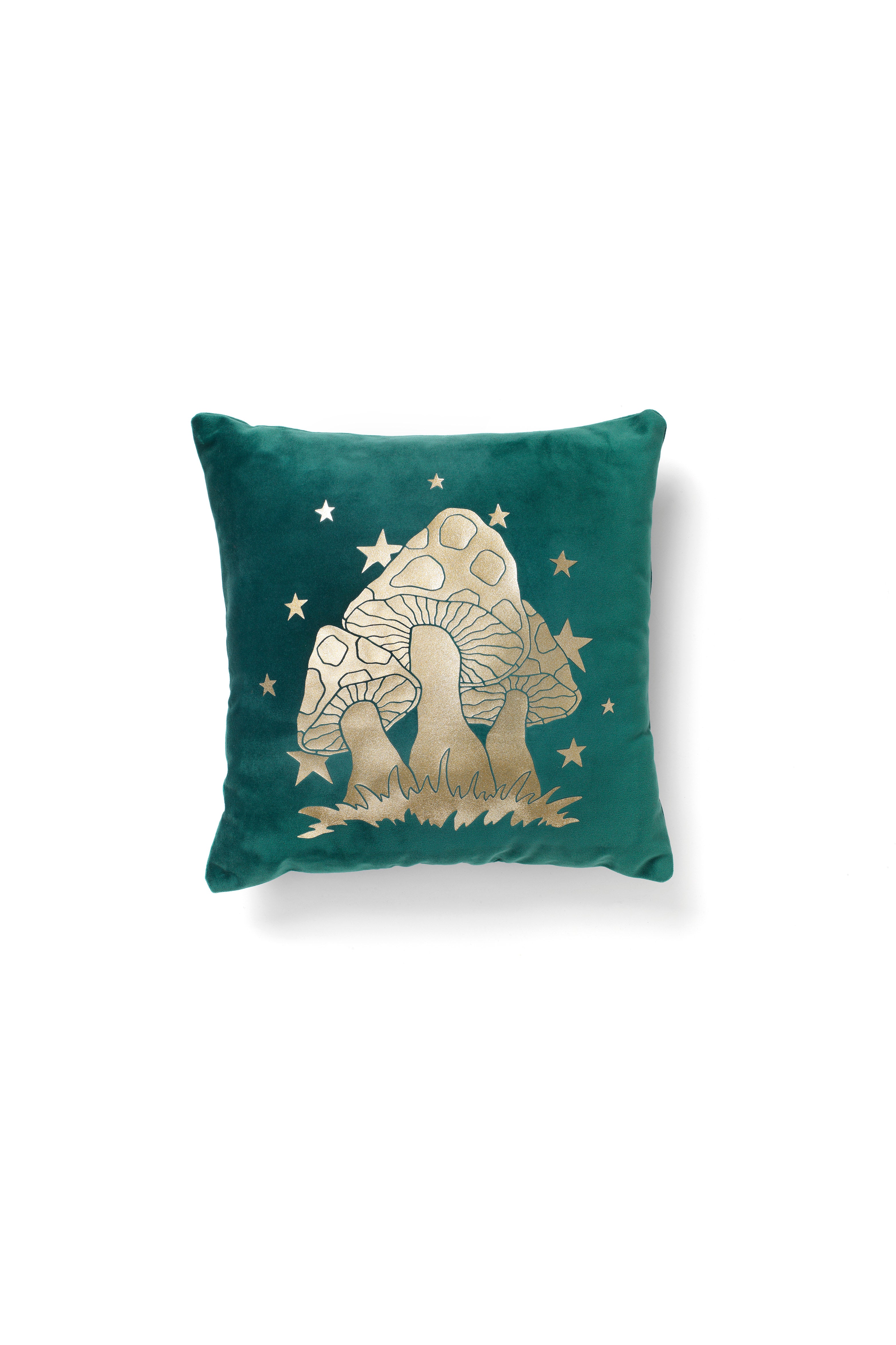 SALE: Magic Mushrooms Emerald Velvet Cushion