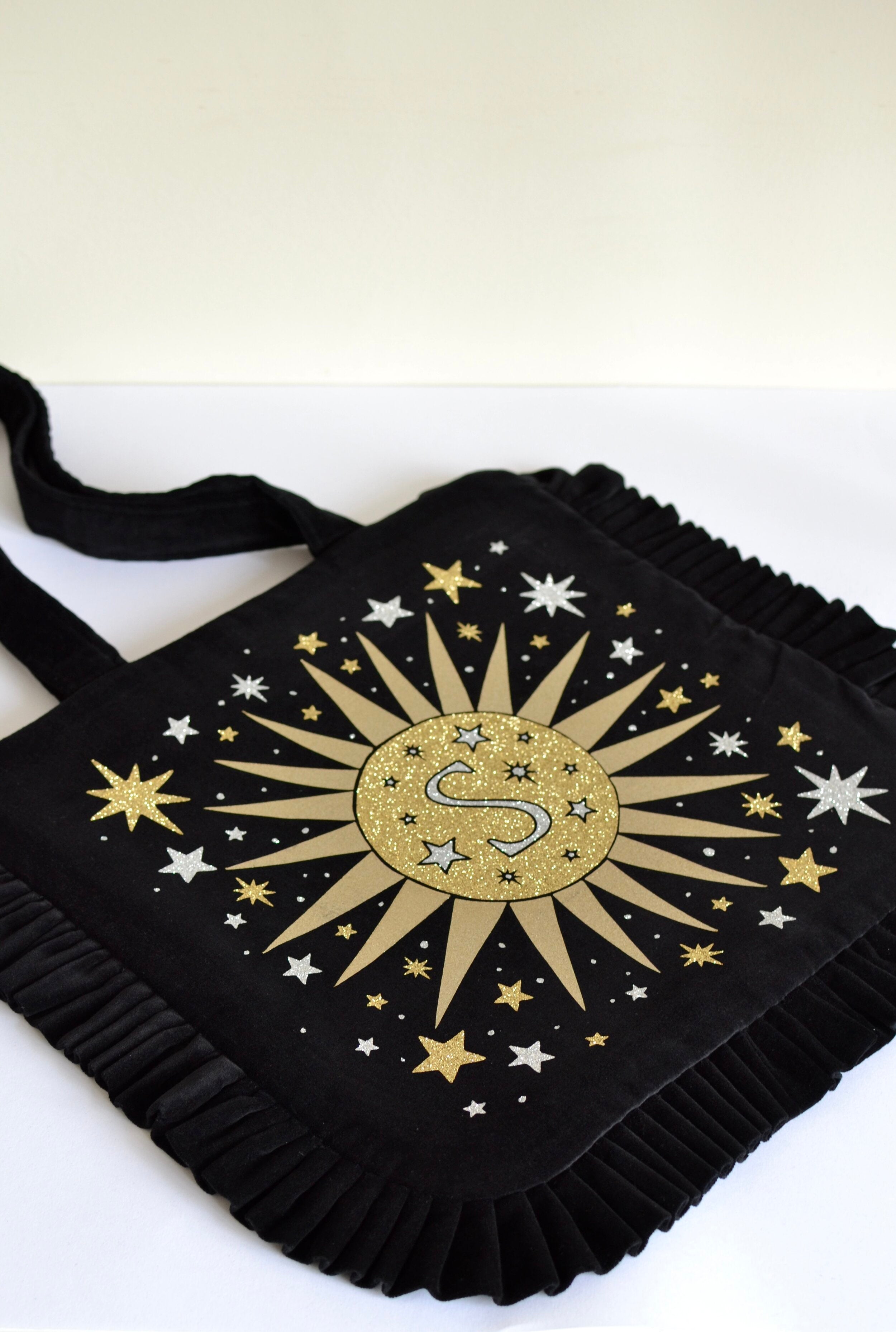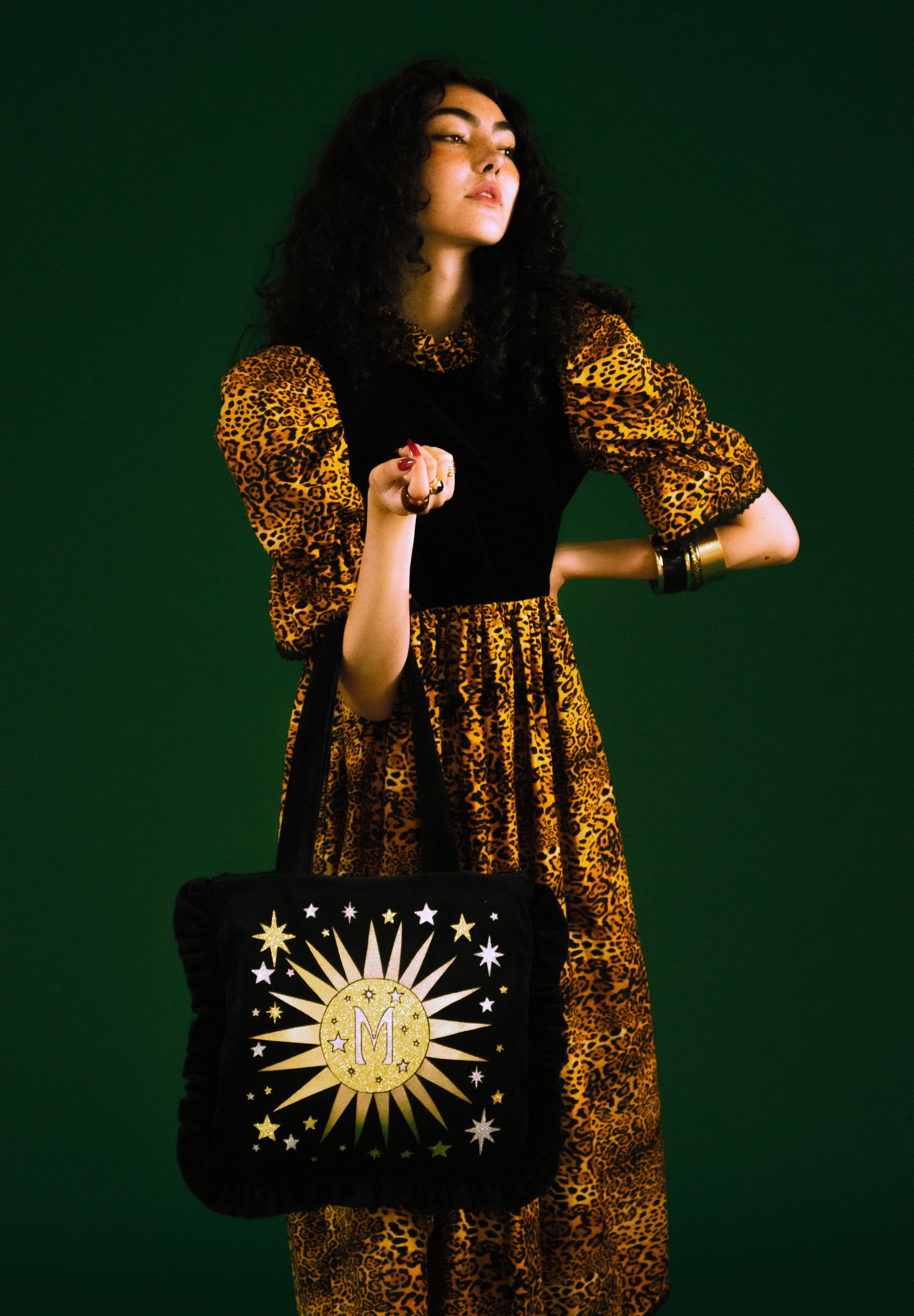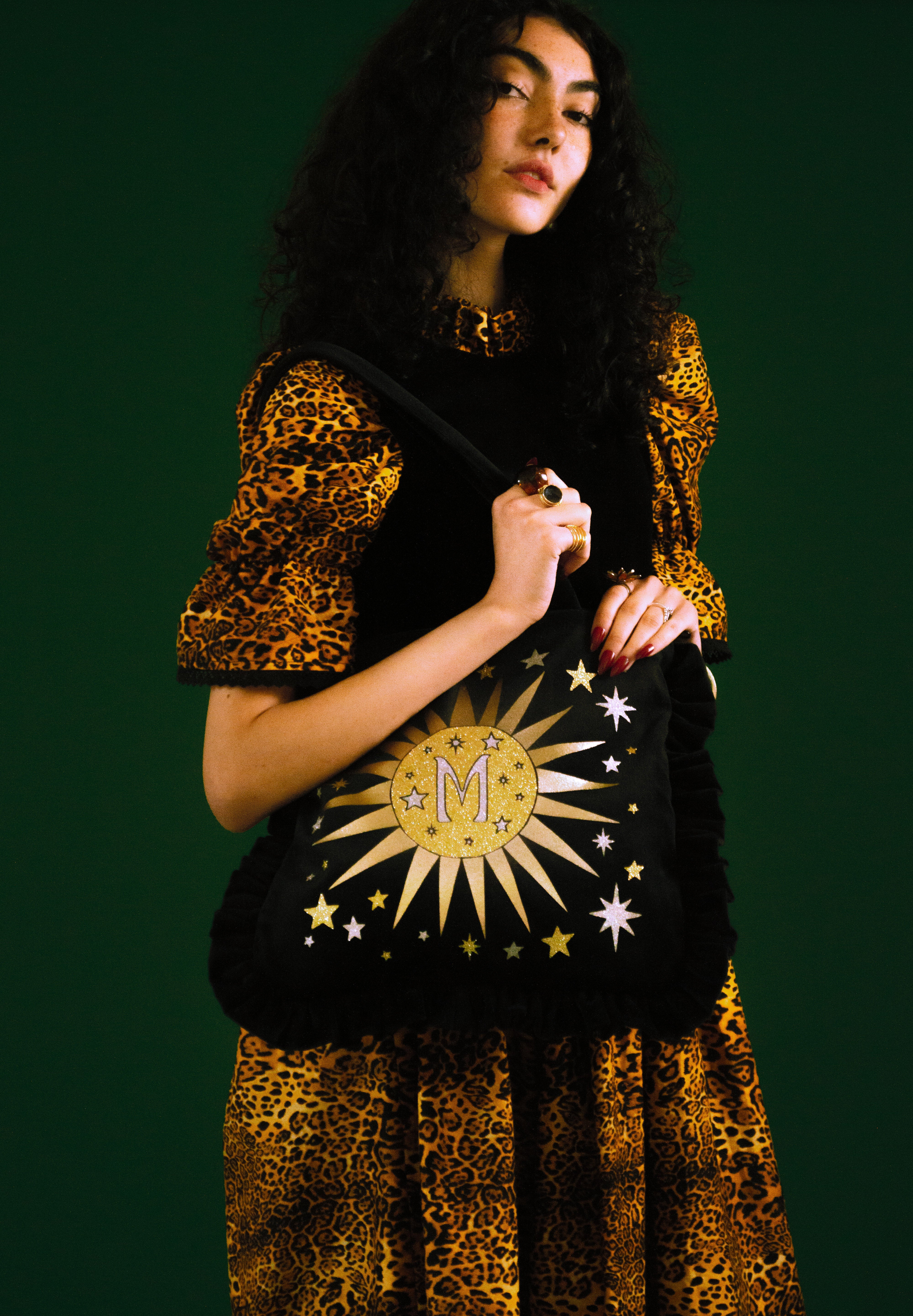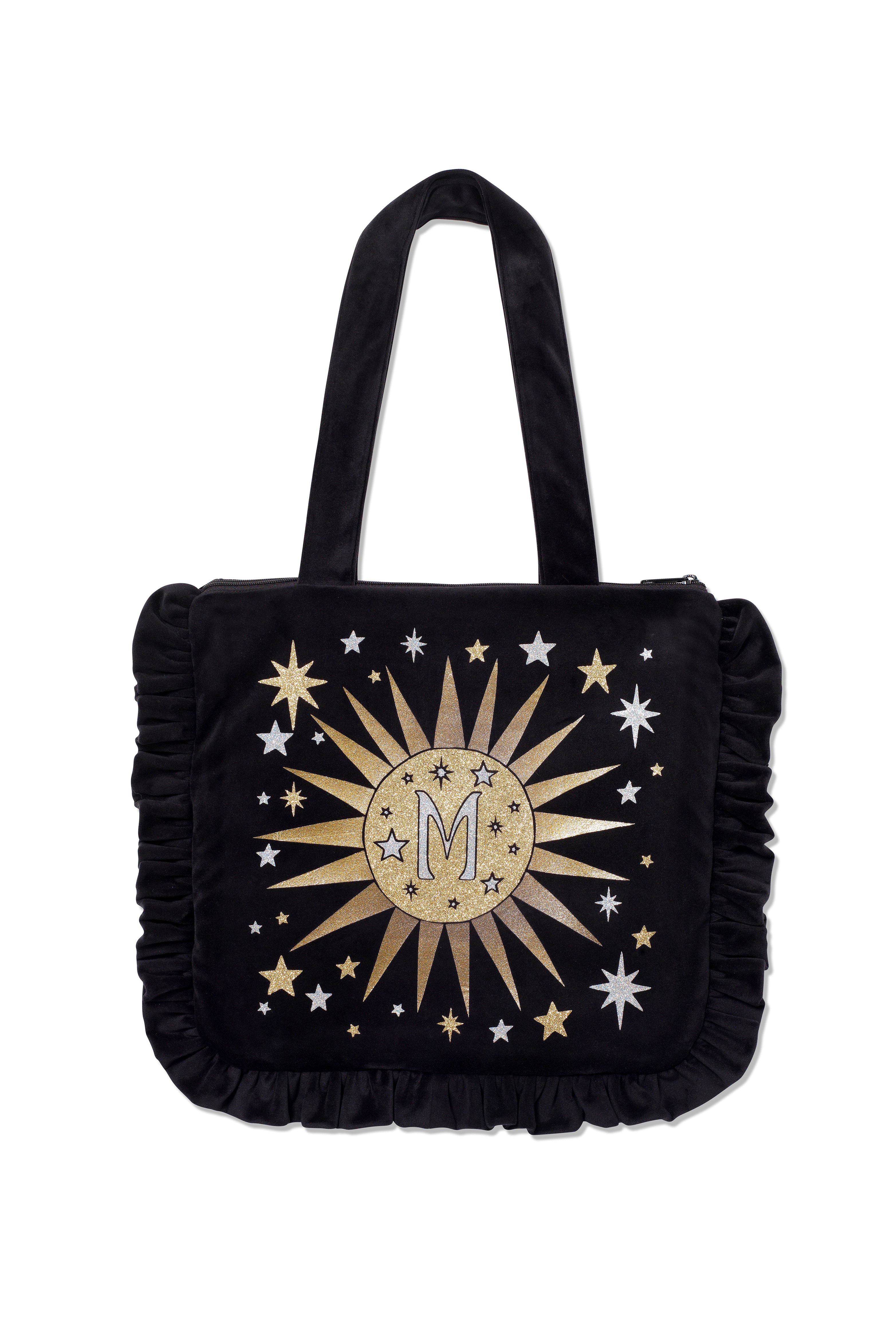 Unleash your celestial style and celebrate your name by choosing your very own letter, in our exclusive font surrounded by a magnificent celestial explosion. This enchanting accessory is crafted with a captivating blend of glamour and bohemian mystique. Swirling patterns evoke the mesmerising energy of a supernova, inviting you to embrace your inner cosmic goddess. Whether you're wandering through a moonlit garden or sipping elixirs at a chic soirée, this bag will make you the center of celestial attention. Unlock the secrets of the universe and let your style shine with the Supernova Monogram Velvet Bag.